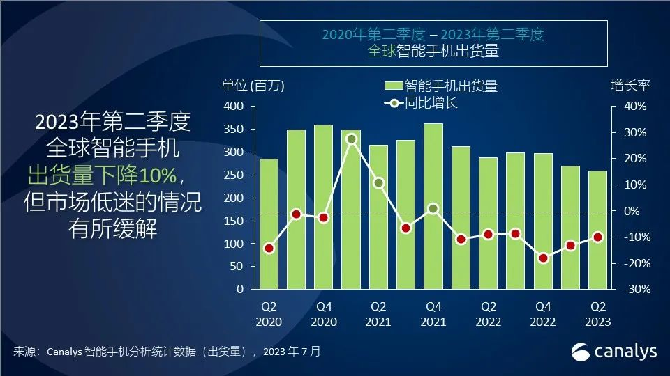 023年Q2环球智熟手机市集陈诉市集调研机构Canalys发表2,显示陈诉,量按年下跌10%环球智熟手机出货,Q1跌幅收窄较2023年Canalys:2023年第二季度全球智,改正迹象显示出。手机厂商中前五大智能,机市集需求苏醒青睐幼米率先得回智熟手,2个百分点至13%Q2市占率环比提拔,比大幅提拔市占率环,行业领涨。