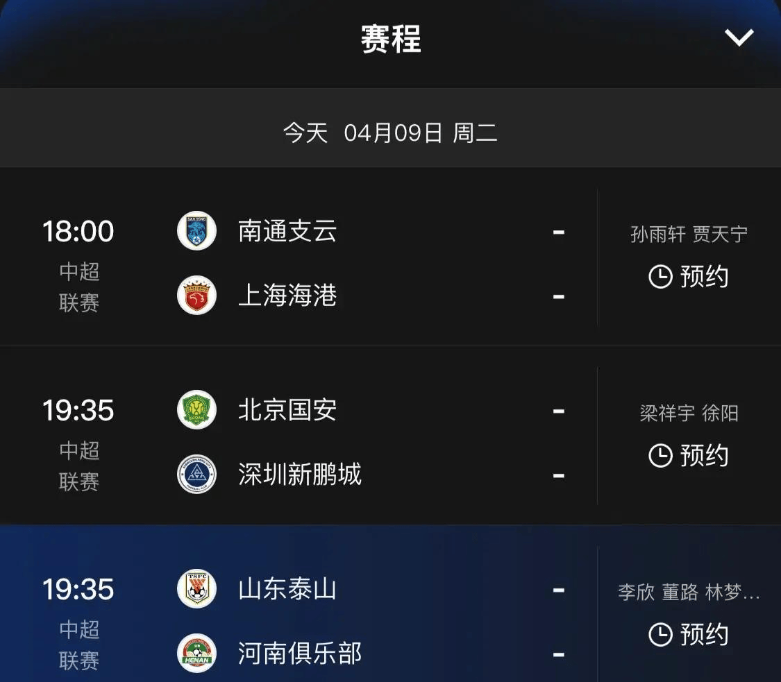 的中超逐鹿4月9日,会计划直播以表除了央视5频道,中超第5轮赛事直播咪咕体育也会有本次,会员本事阅览逐鹿直播的但咪咕体育应当仍然需求。播三东泰山这场逐鹿的正本认为此日央视会直,经被举重全国杯暂用了没念到这个时期段已,播上海海港这场逐鹿央视5频道也只可直。