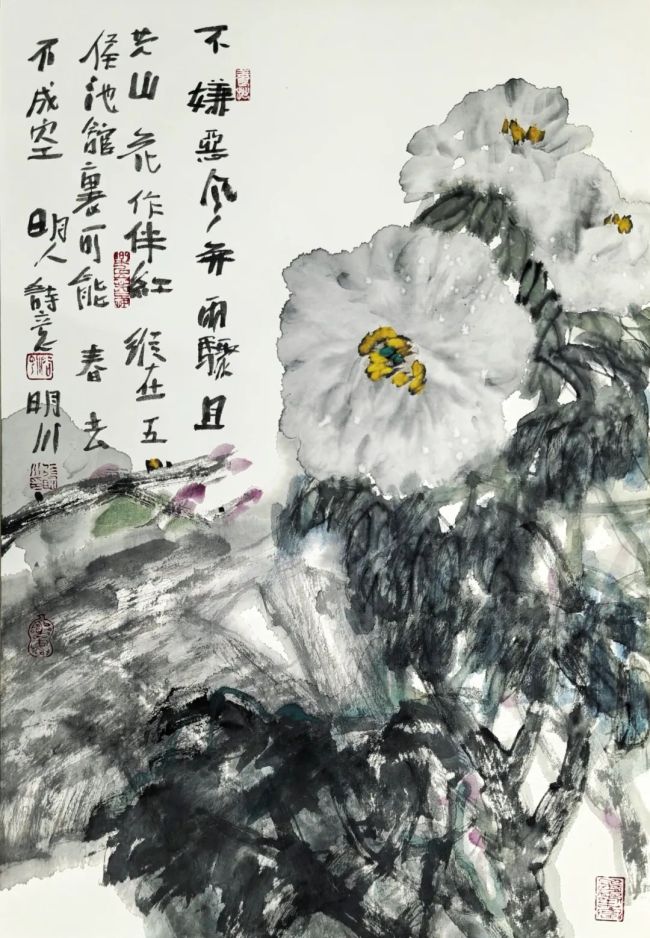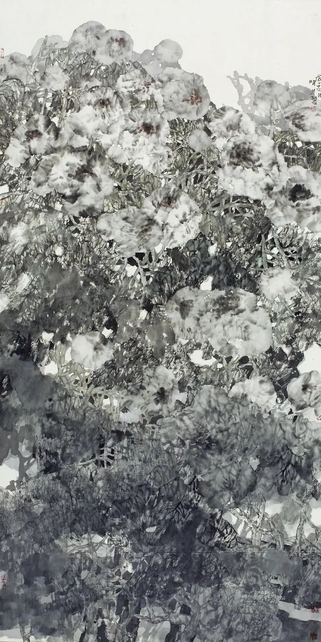 拔取上题材,花、梅等守旧核心他钟情于牡丹、荷,新的审美内在却总能赋之以。列作品中《荷》系,既延续了文人画的精致风趣荷叶与莲蓬正在墨色衬托中,放用笔注入新颖认识又经由斗胆留白与奔。留神的是越发值得,质也深深分泌其花鸟创作中军旅生计所积淀的心灵态,透出坚强刚健的品德使作品于守旧题材中。》中的牡丹如《香魂,铮铮铁骨被评“,逼人繁荣,俗之态”毫无媚。水、军事作品内正在一律这种心灵态质与其山,术本体的深度交融是家国情怀与艺。“画幼境大”他的花鸟作品,拓出巨大意境于有限尺幅中,花鸟画艺术大展优良作品奖《盛世风华》获首届世界,既承文脉被誉为“,视觉张力”又具新颖,统出新道途上的告捷敷裕印证了他正在传。