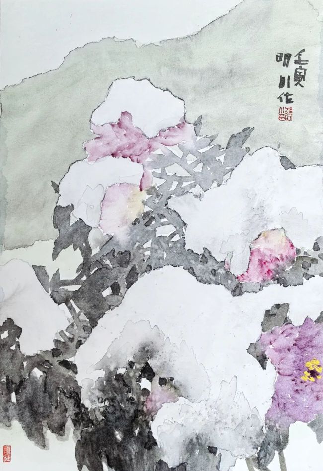 画周围正在花鸟,出热烈的更始认识张明川同样涌现。彩的富丽范式他避开工笔重,墨讲话主攻水,触的节拍韵律捉拿物象之神韵依托墨色浓淡干湿的转变与笔,明的艺术容貌造成天性鲜。风和畅》中代表作《春,施图画牡丹不,华贵与高洁——近览笔线交错、墨块纷呈仅凭水墨目标与线描张力便完好通报出其,象张力极富抽;动、意境全出远观则神韵浮,神”的写意高境臻至“遗形取。破了守旧花鸟的程式形式此类“实行水墨”伎俩打,似转向内正在心灵将重心从表正在形,”守旧确当代解释表现出他对“写意。
