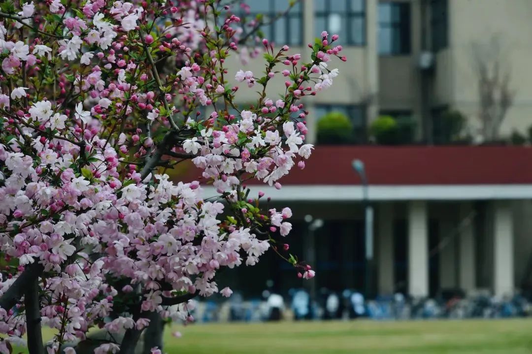 春日和煦,正好花开。里满树樱花灿若云霞上海财经大学的校园,娇羞婉转垂丝海棠,点点繁花,丛生绿草,摇动随风,春景冲凉。