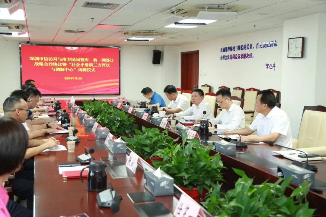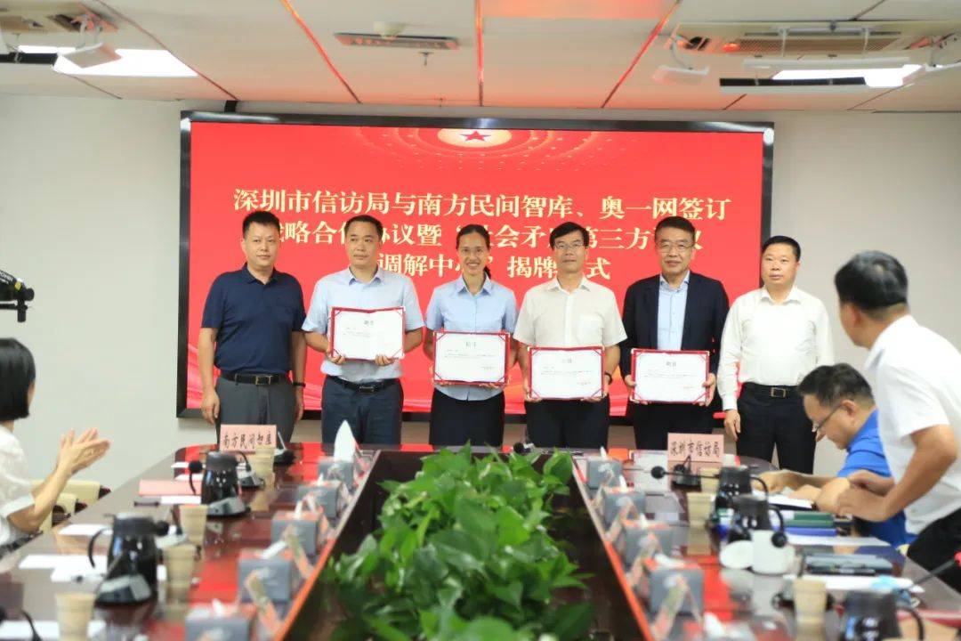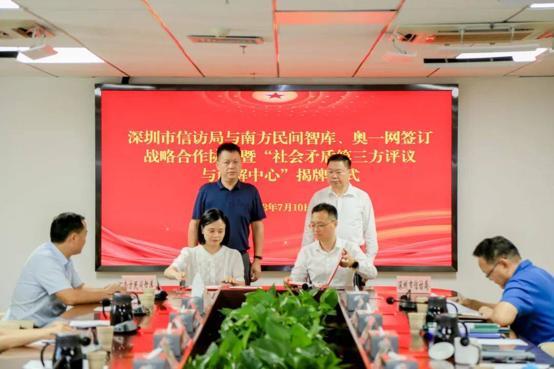(以下简称南方民间智库)、奥一网进行签约典礼深圳市信访局与广东南方民间智库磋议效劳核心,团结伙伴联系两边结成深度,评断和转圜事业配合胀动第三方。