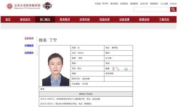 25日8月,官网显示北京大学,任北京大学体育教研部讲师乒乓球奥运冠军嘱咐已担,为运动锻炼探讨目标,教学型岗亭为。