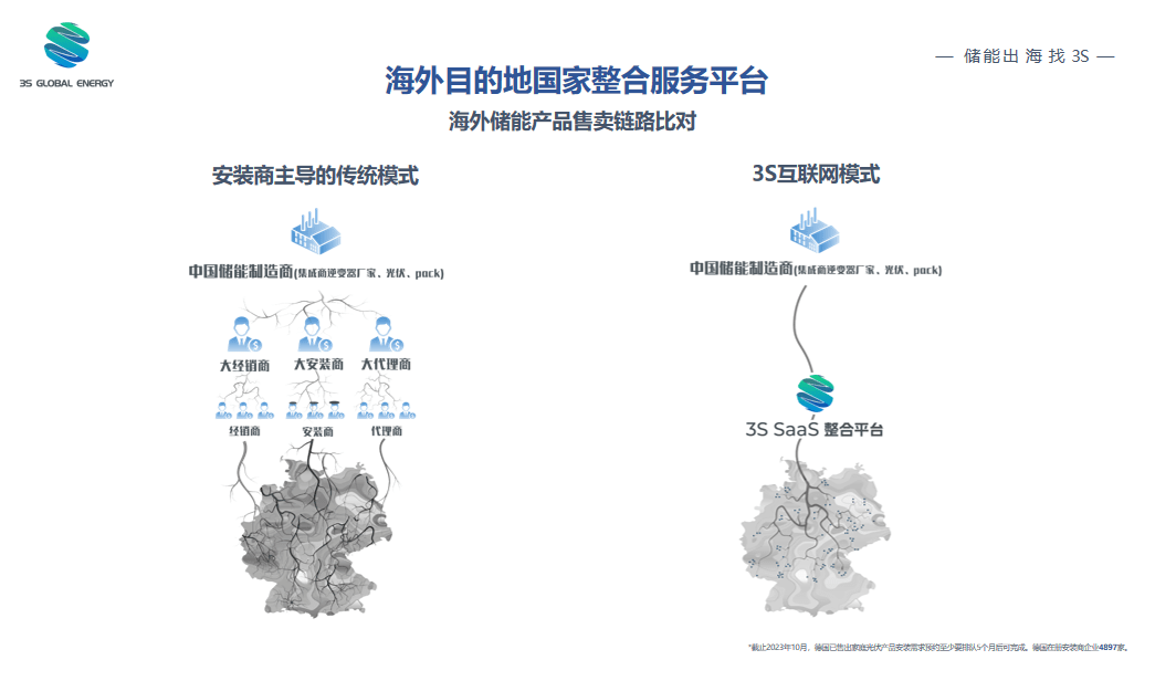 合平台供职、售后维修SaaS供职三类供职当地化供职蕴涵:准经销商供职、安置商整,大利亚、南非13个国度及区域整合安置商资源约1345家(数据不断增加中)已正在日本、英国、美国、德国、意大利助力国内储能企业顺利出、西班牙、希腊、法国、泰国、印尼、澳, Solution当地团队和公司且设立并运营3S Energy,去“中央商”可能帮帮企业,接成亲当地化安置商正在3S的平台上直,地需求相识当,化、特性化需求满意用户定造,美价廉”主打“物。