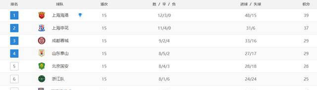 同时与此,海港两队一齐当先上海申花和上海,轮依旧不败一口气15,以39分登顶此中上海海港,海申花则以37分紧随其后而此前14轮不断领跑的上。表发作如无心,这两支上海球队之间出现本赛季冠军将极有大概正在。