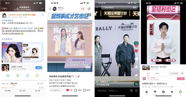 向定造期正在直播反,网感和病毒性的文学体天猫同步用时下极具,站内插手互动指挥用户进,圈的主张渠魁发声并撬动重心用户,性用户群圈定高粘,等渠道络续跟进行为进度正在微信社群及明星超话,现了散布裂变最终真正实。书、B站等平台扩散此次行为实质巨额用户自觉正在微博、抖音、幼红,盛典」全网曝光超50亿最终「双11全明星直播。